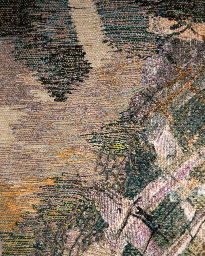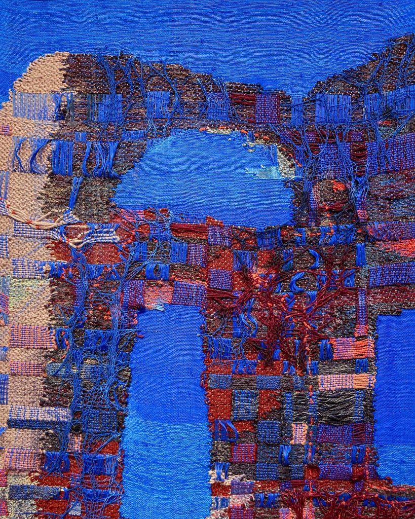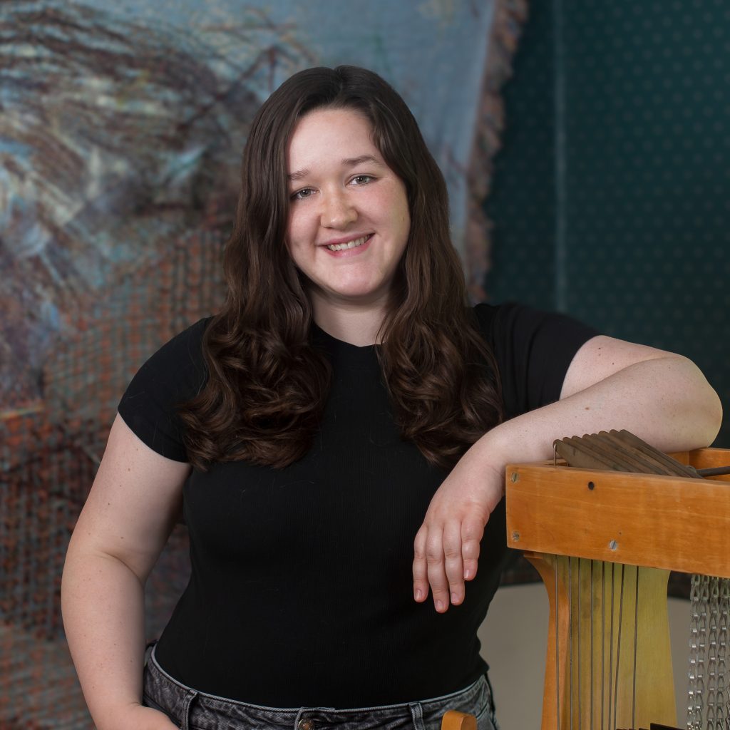 Maris Van Vlack (b. 2002) grew up in Massachusetts surrounded by the historical textiles practices in the Boston area. She received a BFA in Textiles from the Rhode Island School of Design (RISD) with a concentration in Drawing. Her work combines weaving with painting processes to create architectural landscape tapestries. Maris has exhibited her work in the USA and Europe, including shows at the Icelandic Textile Center (Blönduós, Iceland), the U.S. Capitol Building (Washington, DC), the RISD Museum (Providence, RI), and the NADA New York (New York, NY). Maris is a recipient of the Kennedy Center’s 2024 Emerging Artist Award, the St. Botolph Club Foundation Emerging Artist Award, and the RISD Textile Department Award for Innovation in the Textiles Field. Her work has been published by the Boston Globe, Google Arts & Culture, Fiber Art Now, and Warp + Weft Magazine.