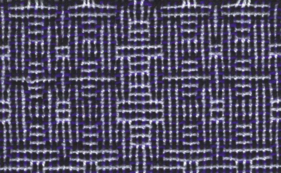 Because of the rich weaving heritage known to Hartland we decided to base our pattern on Weaving Designs by Bertha Hayes-Miniature Overshot Patterns by Norma Smayda, Grethen White, Jody Brown and Katharine Schelling. We chose “Linoleum”, design 34 on page 134. We then decided to weave it as a shadow weave. Thanks to Gisela Bosch’s expertise and her weaving program we developed this pattern
