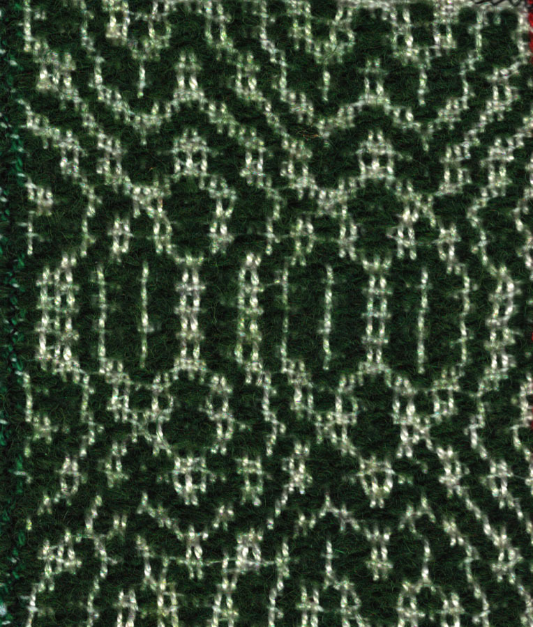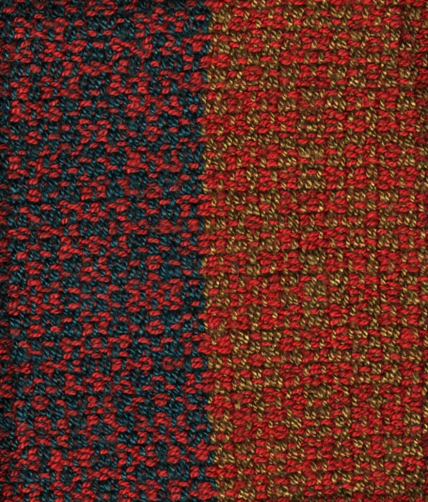 Michigan Weavers Guild celebrated their 70th anniversary in 2018. They chose this weave structure because it is from that time era, giving our sample historic significance. Harriet Tidball introduced Chromatic Texture in her Shuttle Craft newsletter in 1952. She also called it Extended Point Twill. Looking closely, we can see that this is also crackle threading. To make it more modern we added iridescence to the fabric Weavers were: Leigh Ann Mills, Loretta Oliver, Sue Walton and Cynthia Wayne.