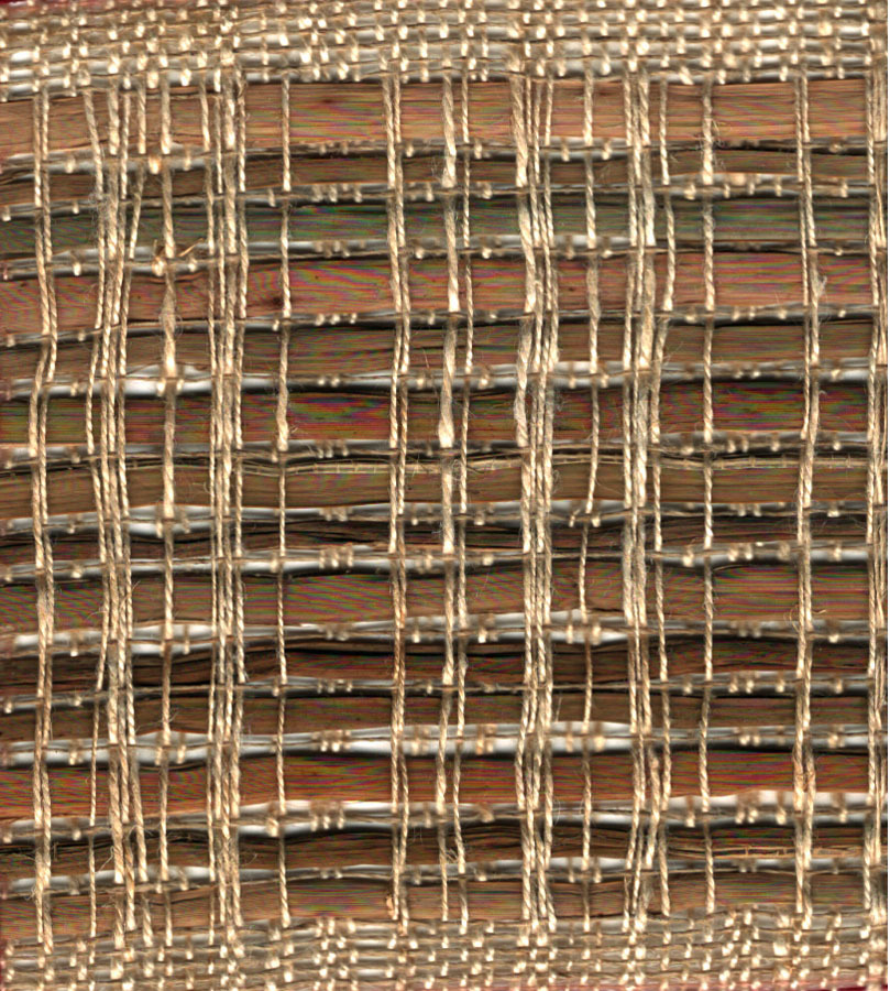 Our state has an abundance of natural resources and we wanted to highlight that in our samples. This year our study group focused on the “overshot” structure. We have chosen “Cats Paws and Snail Trial (Wandering Vine)” for our threading. Our warp is 18/2 Dryspun Hemp and for the tabby 20/1 Linen and cattail leaves for our pattern weft.