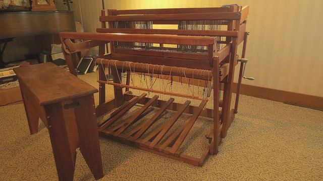 40 inch weaving width, 4 harnesses, flat steel heddles, 10 treadles