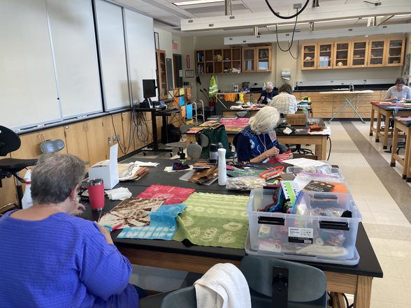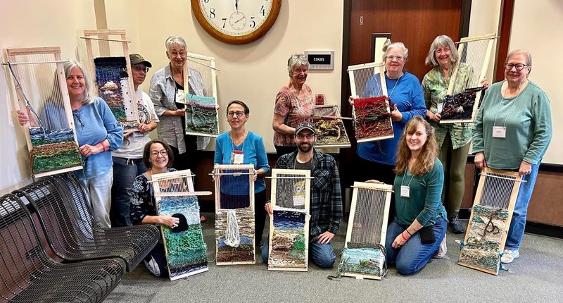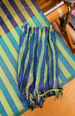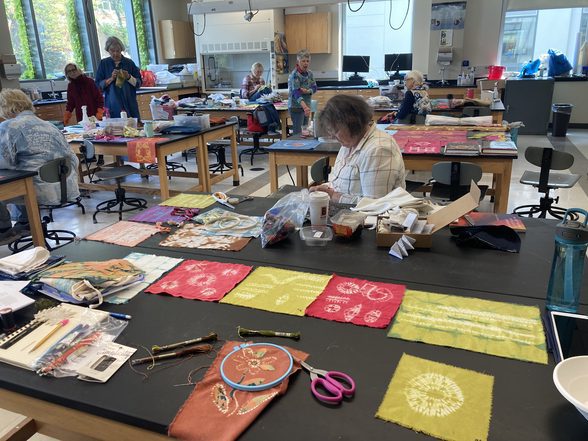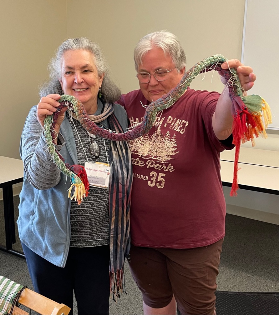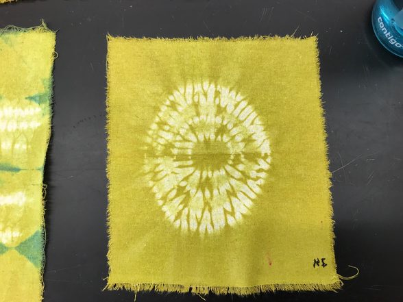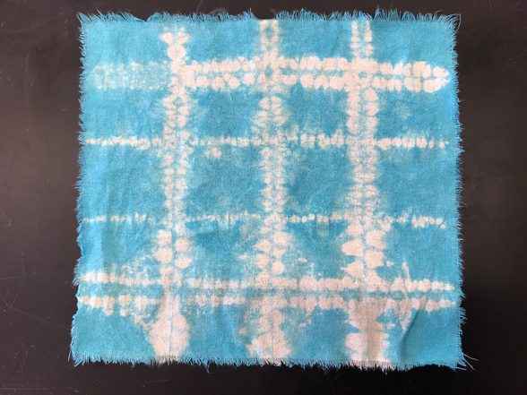 Celebrating Cindy’s shibori weaving, tied and ready to felt